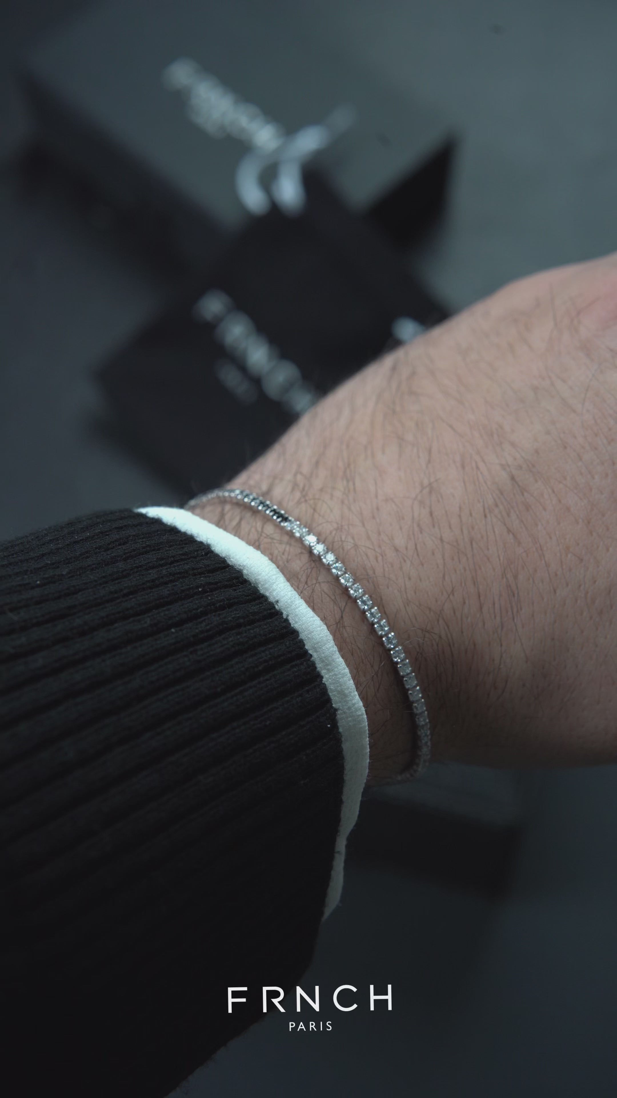 FRNCH 925 Ayar Gümüş 2MM Zirkon Taşlı Siyah-Beyaz Renk Tennis Erkek Bileklik FRJ11979-2079-AB2